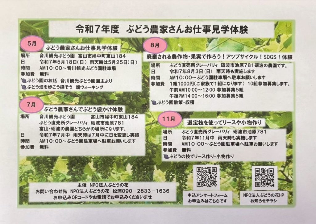 7月12日土曜、19日土曜日にぶどう園で(砺波か富山です)